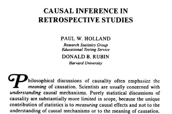 Figure 1.1. This single statement by Holland and Rubin in 1987, co-creators of the Potential Outcomes Model for counterfactual causal inference,