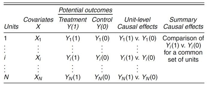 Figure 6.1. A. Rubin’s (2005) description of the Potential Outcomes model and its relationship to counterfactual (cf) causal effect estimands.